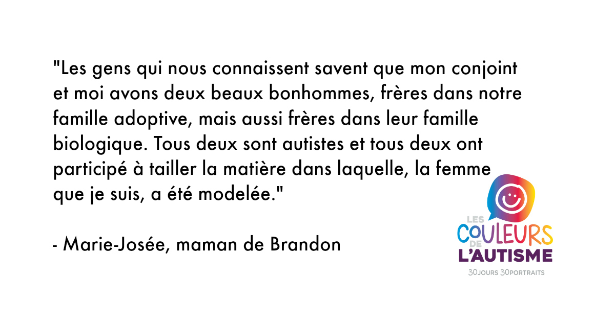 Les couleurs de l’autisme est une initiative pour faire connaître et briller les différentes couleurs, toutes uniques, de l’autisme, pendant le mois d’avril. Voici la couleurs de Brandon, écrite par sa maman, Marie-Josée Aubin,.