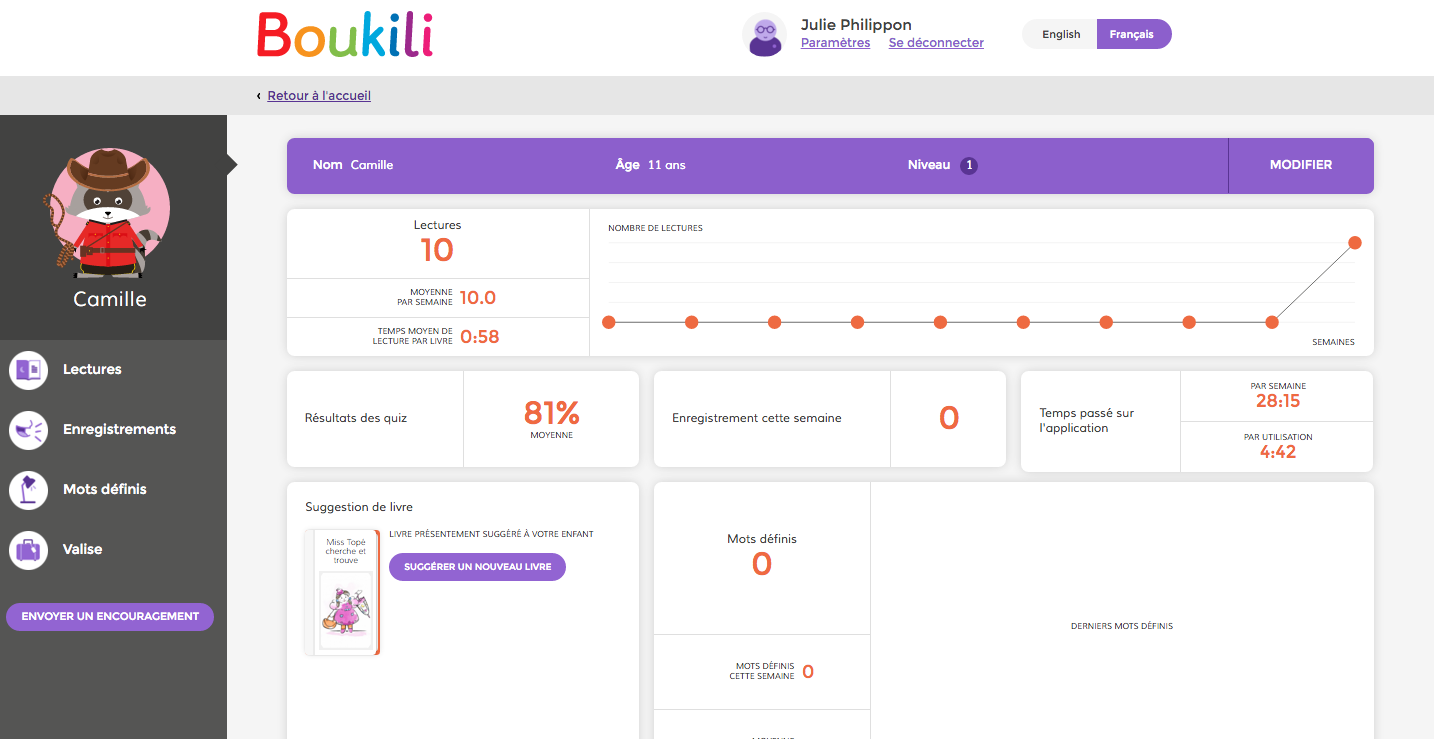 Mon coup de coeur? Nous, ce qu’on a vraiment aimé? C’est l’option de pouvoir faire lire par le iPad les phrases ou encore les questions. De plus, j’ai eu beaucoup de plaisir à enregistrer nos propres lectures, malheureusement, je ne peux pas vous les partager, mais enfants ne veulent pas! En fait, je trouve que ça peut être très intéressant cette fonction pour accompagner nos enfants même lorsque nous ne sommes pas là. 😉