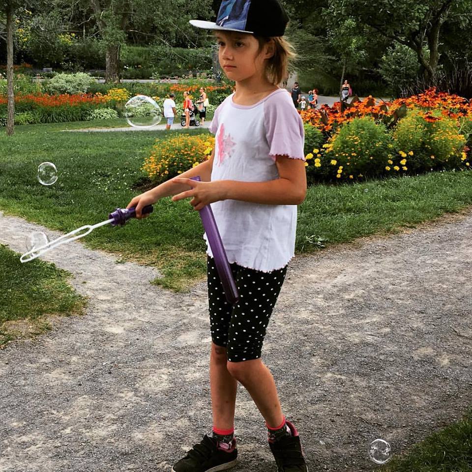 Je ne savais pas si c’était pour « pogner » encore, mais cocos commencent à être grands! Pourtant, ce fut un beau moment pour Fillette et tous les passants (ainsi que Mamie) souriaient en voyant les bulles, essayaient des les attraper!